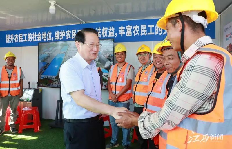 赤日炎炎,南昌洪騰高架項(xiàng)目現(xiàn)場(chǎng)一派繁忙,工程車來回進(jìn)行路面瀝青攤鋪,工人們正在揮汗如雨作業(yè)。易煉紅來到工地現(xiàn)場(chǎng),向一線建設(shè)者們致以問候,感謝他們?yōu)槟喜鞘薪ㄔO(shè)作出的貢獻(xiàn)。他說,南昌是英雄城。大家來自全國(guó)各地,頂著烈日、不懼“烤”驗(yàn),揮灑的每一滴汗水、付出的每一份辛勤都是在為英雄城南昌的建設(shè)發(fā)展添油助力,你們是光榮的勞動(dòng)者,也是在高溫下戰(zhàn)斗的“英雄”。易煉紅反復(fù)叮囑大家要保重身體,采取有效措施防暑降溫,注意自我防護(hù)、勞逸結(jié)合,以健康的身體投入緊張的工作。在現(xiàn)場(chǎng),易煉紅還聽取了項(xiàng)目有關(guān)情況介紹,要求在確保質(zhì)量和安全的前提下,加快推進(jìn)項(xiàng)目建設(shè),確保早日建成通車。
